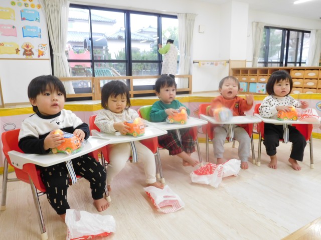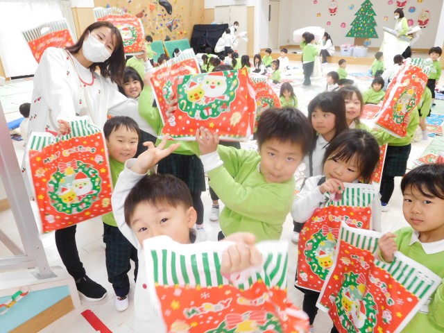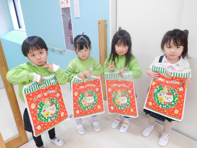 今日はサンタさんからのプレゼントを持ち帰ります。お家でもお話し聞いてみてくださいね!
