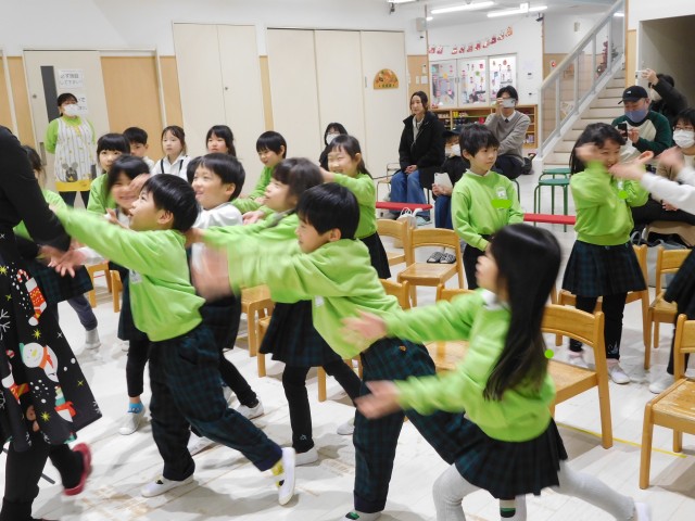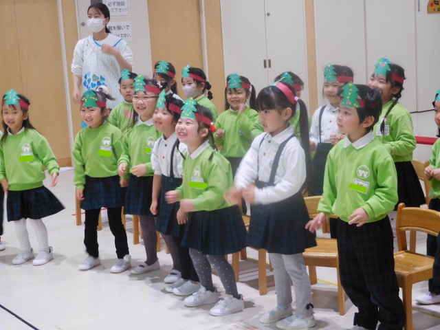 ゆりぐみさんもきくぐみさんもみんなニコニコで、英語で挨拶したり、歌を歌ったり、ゲームをしたりしていましたよ。