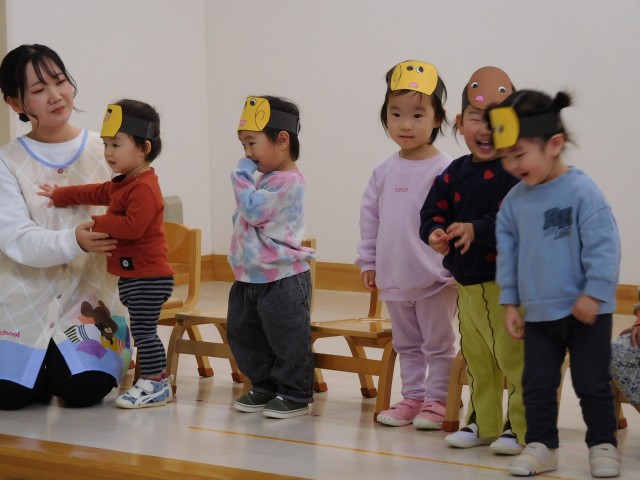 遊びの中に取り入れている歌や手遊び、楽器遊びを発表会用にアレンジしてお見せしましたがいかがでしたか?本番はちょっぴりドキドキしている子どもたち・・・でも、ニコニコ笑顔もたくさん見られましたね! そんな姿にほっこりとした気持ちになりました。