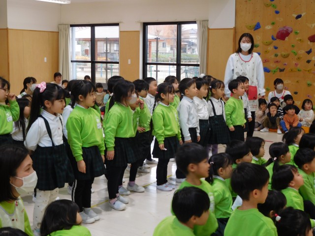 ゆりぐみさんもきくぐみさんもみんなニコニコで、英語で挨拶したり、歌を歌ったり、ゲームをしたりしていましたよ。