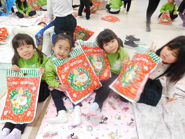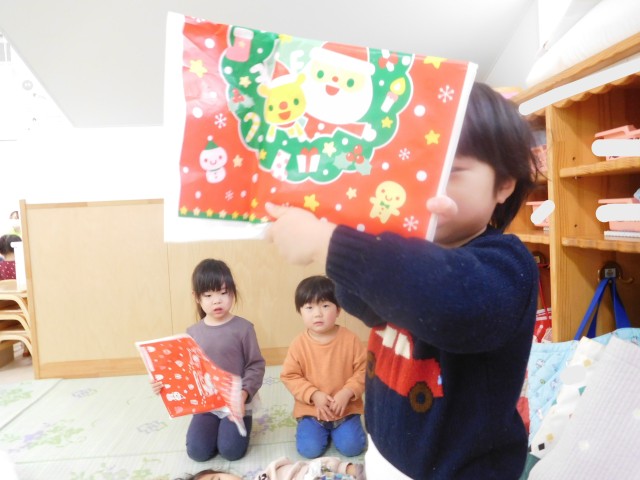 今日はサンタさんからのプレゼントを持ち帰ります。お家でもお話し聞いてみてくださいね!